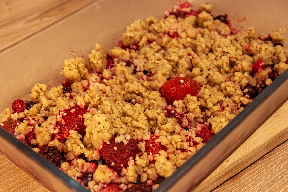 Das Gericht ist dabei auch noch super schnell gemacht. Einfach nur die Streusel anrühren und mit den Beeren in eine Auflaufform und dann nur noch in den Ofen! Sehr praktisch.
