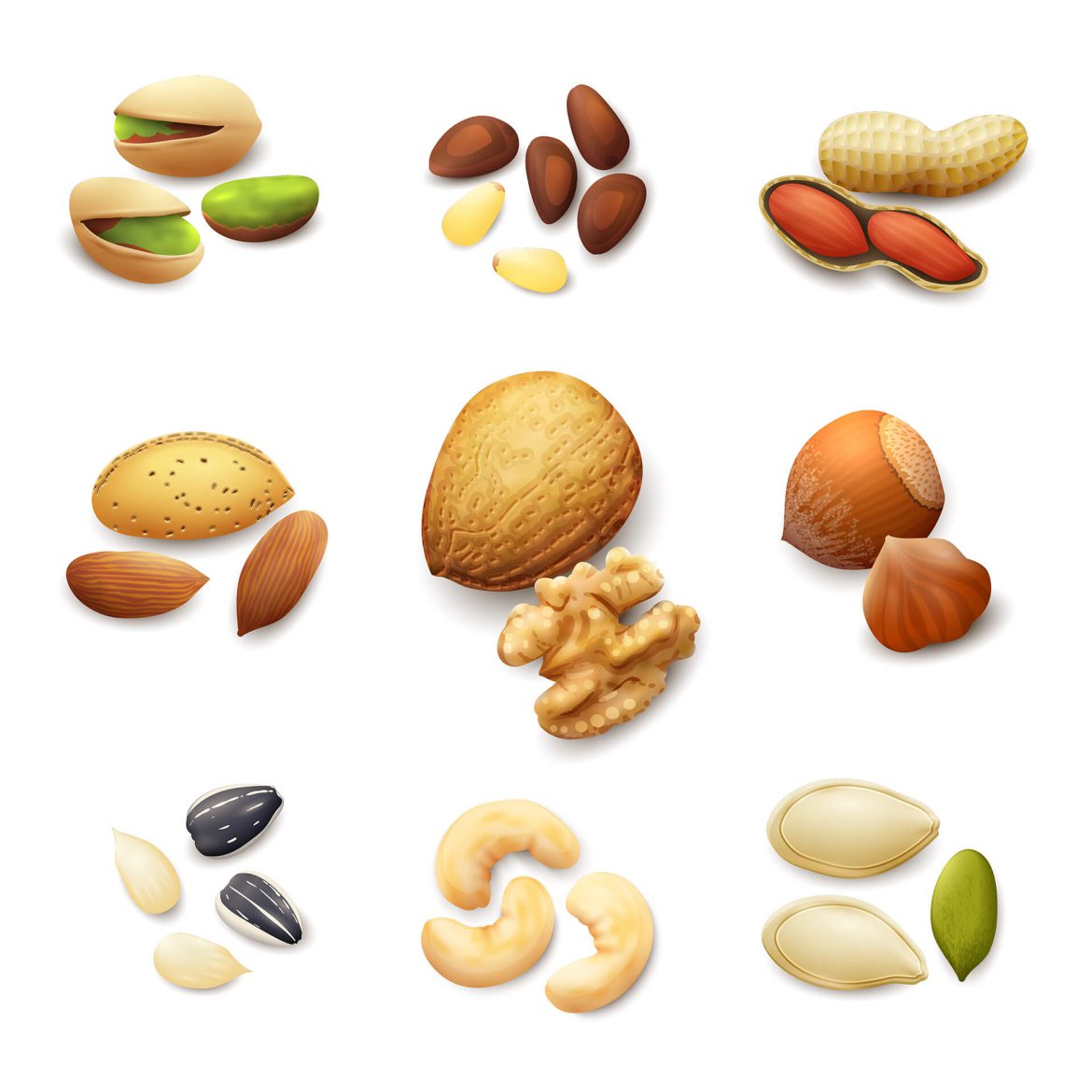 Hier findest du eine Übersicht über gängige Nüsse, Kerne und Samen.