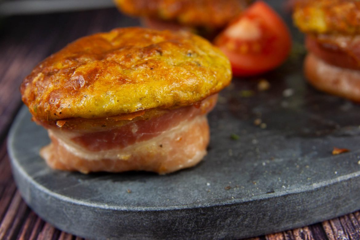 Bei dieser Menge werden es 6 Muffins. Dementsprechend benutzen wir hier auch 6 Scheiben Bacon. Wer es vegetarisch halten möchte, kann den Bacon ja einfach weglassen.