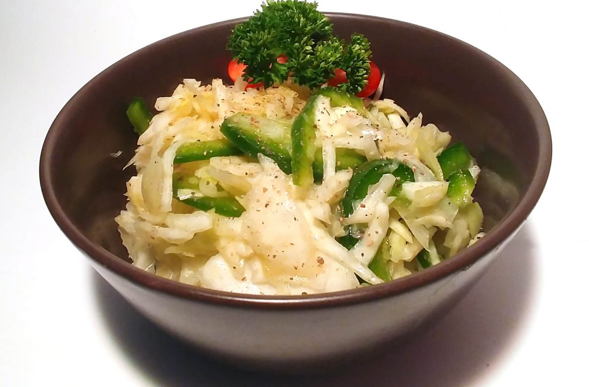 Auch wenn dieser griechische Krautsalat etwas Zeit zur Vorbereitung und zum Durchziehen braucht, kann man ihn wunderbar in größeren Mengen zubereiten und den Rest im Kühlschrank lagern und hat so eine lecker-frische Beilage zu allen möglichen Gerichten. Bei mir mit Gyros und Zaziki ein absolutes Highlight.