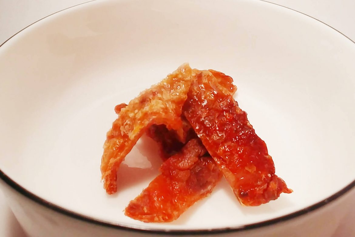 Man erhält, super knusprige und lecker-fettige Hähnchenchips, ganz ohne Kohlenhydrate. Diese kann man als Highlight auf ein Gericht auflegen oder einfach so als Snack essen.