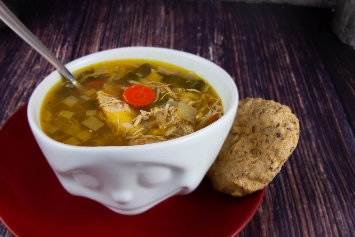 Eine Hühnersuppe ist einfach etwas richtig Gutes. Man kann sie tagelang essen ohne, dass sie langweilig wird, sie macht einen wieder fit, wenn man krank ist und sie rettet die Stimmung und stärkt an grauen, verregneten Tagen.