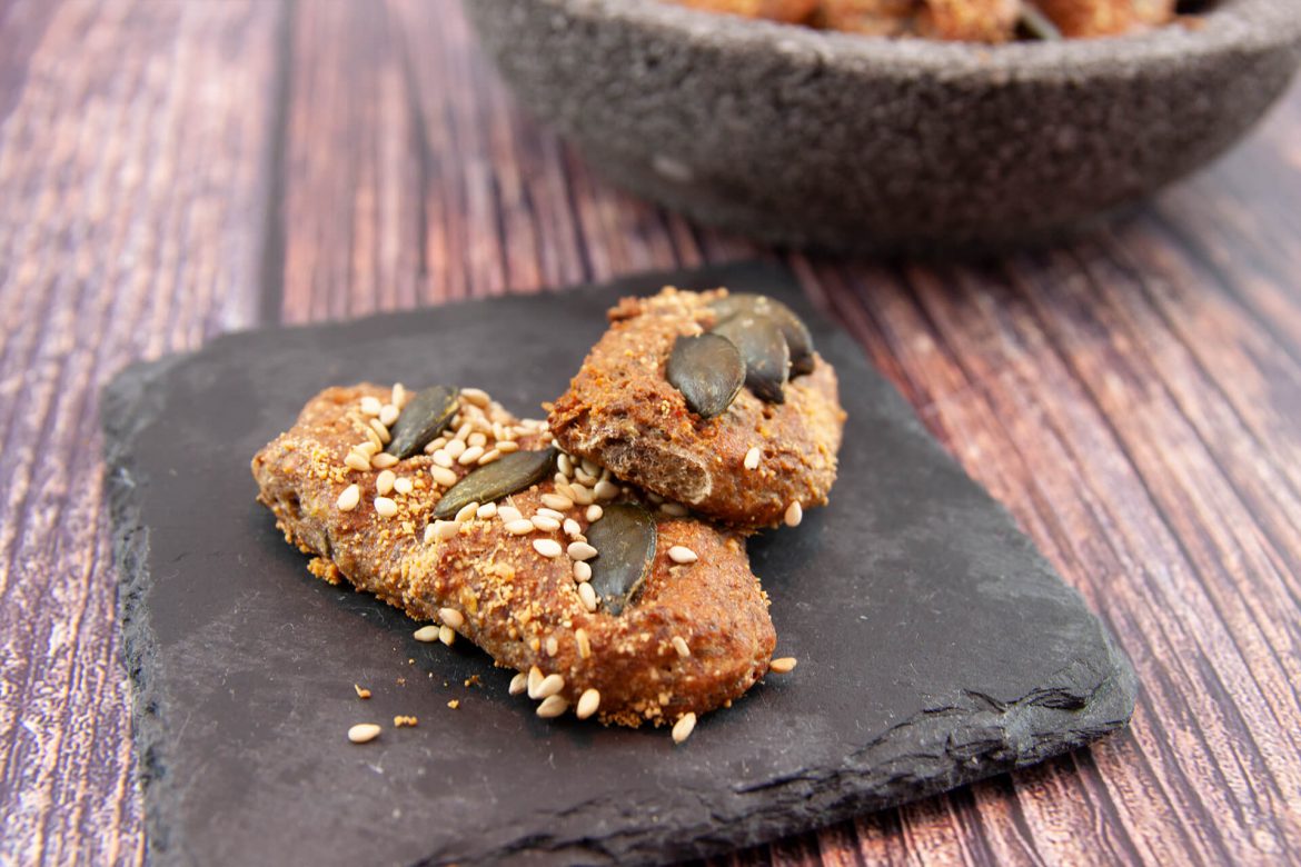 Wie zum Beispiel diese kleinen, luftigen Cracker. Man kann sie nach Belieben mit Körnern und Samen bestreuen und würzen und dann am besten mit einer Portion Joghurt naschen. Durch die Leinsamen- und das Leinsamenmehl stecken sie voller Magnesium, Kalium, Vitamin E und Omega-3 Fettsäuren. Auch wenn der Geschmack des geriebenen Hartkäses nicht besonders stark durchkommt, kann man ihn natürlich auch weglassen, wenn man ihn nicht mag.