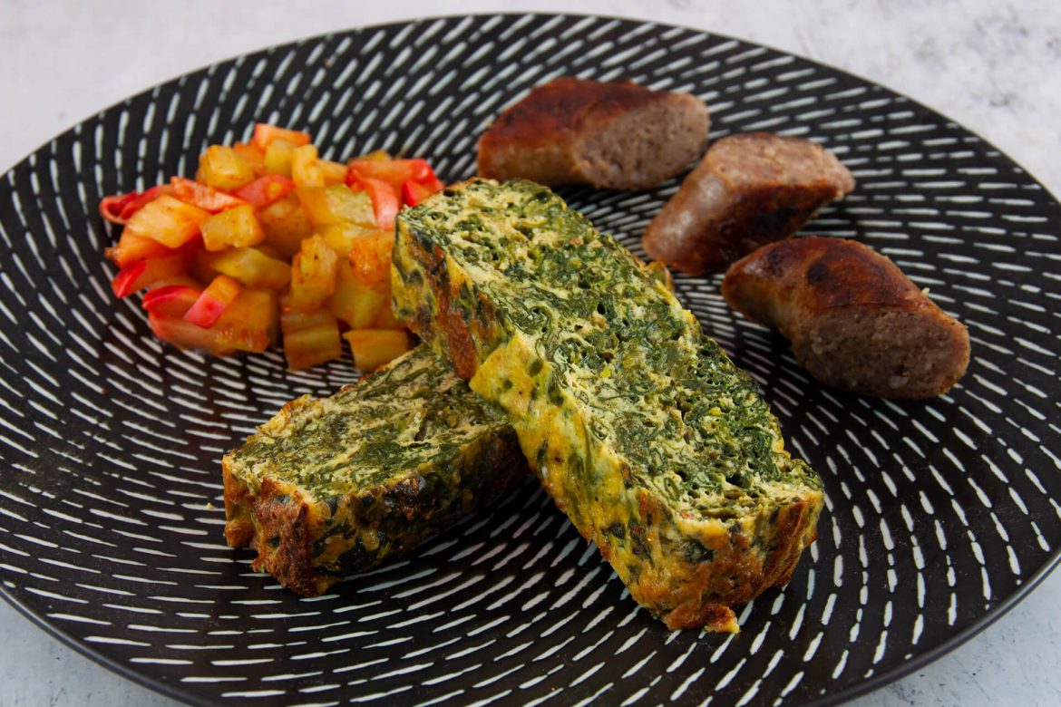 In diesem Eierkuchen kombiniere ich den Spinat mit dem Rührei zu einem eigenen Gericht, welches eine tolle Beilage zu Salat, Fleisch oder eben auch Fisch darstellt. Auch kalt mit etwas Kichererbsenaufstrich oder Frischkäse schmeckt dieser Eierkuchen vorzüglich.