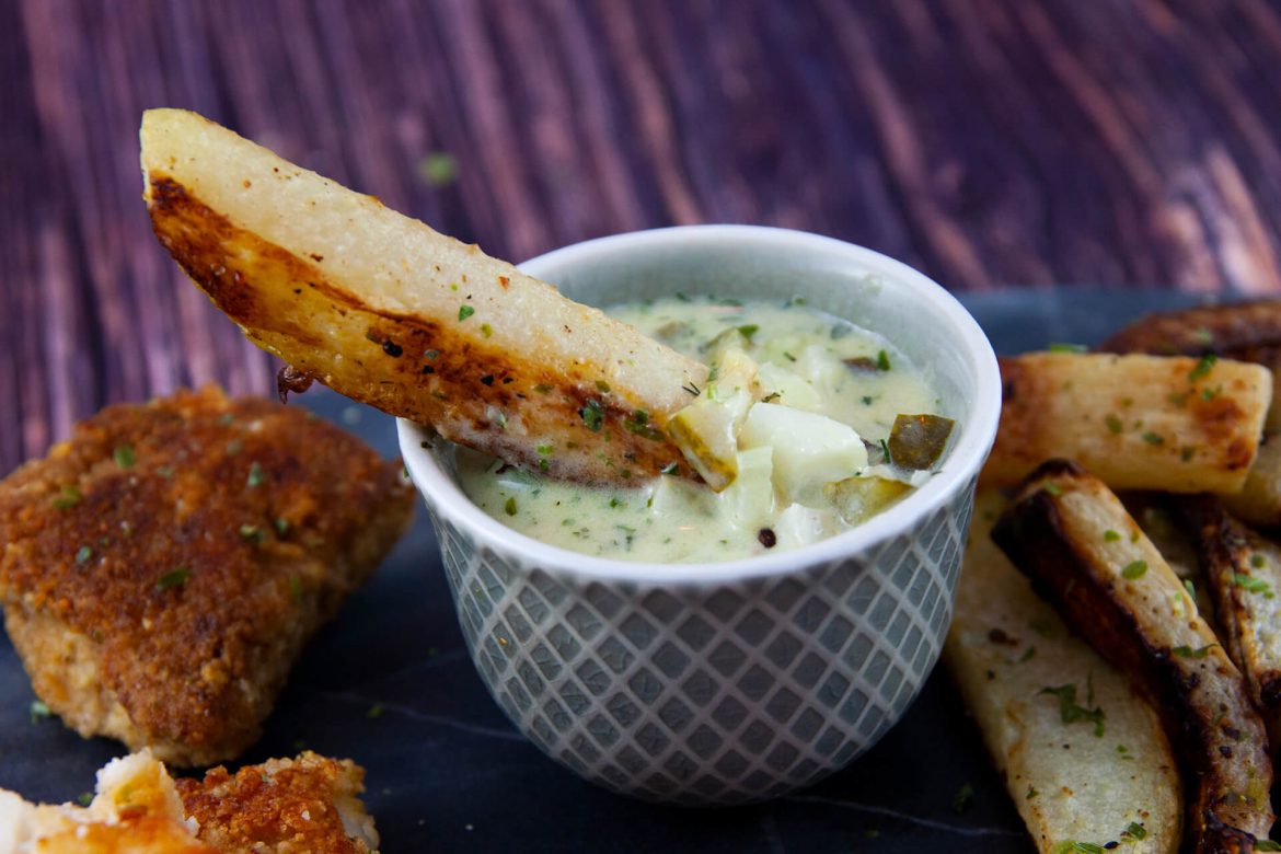 Da will man eigentlich ein Rezept für Remoulade zaubern und merkt dann, dass der Pürierstab nicht da ist: Macht man halt einen Stipp draus und bastelt 2 weitere Gerichte drum herum, damit es Sinn macht! So kann man es auch machen.
